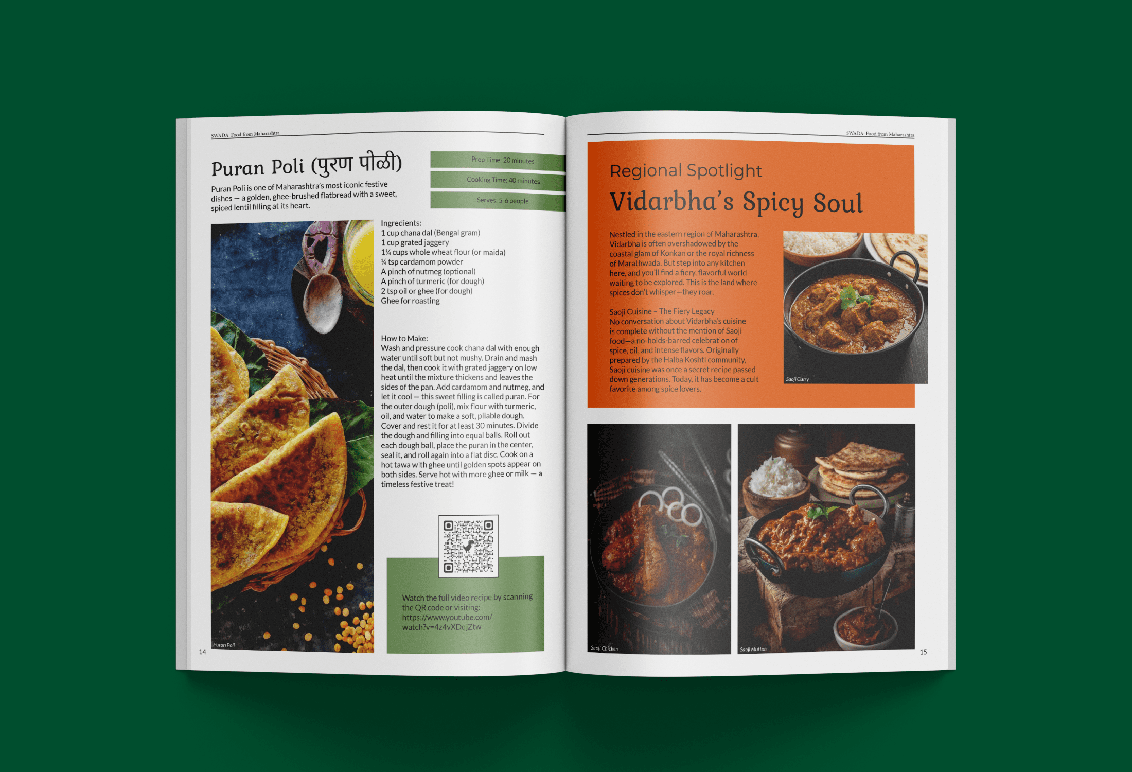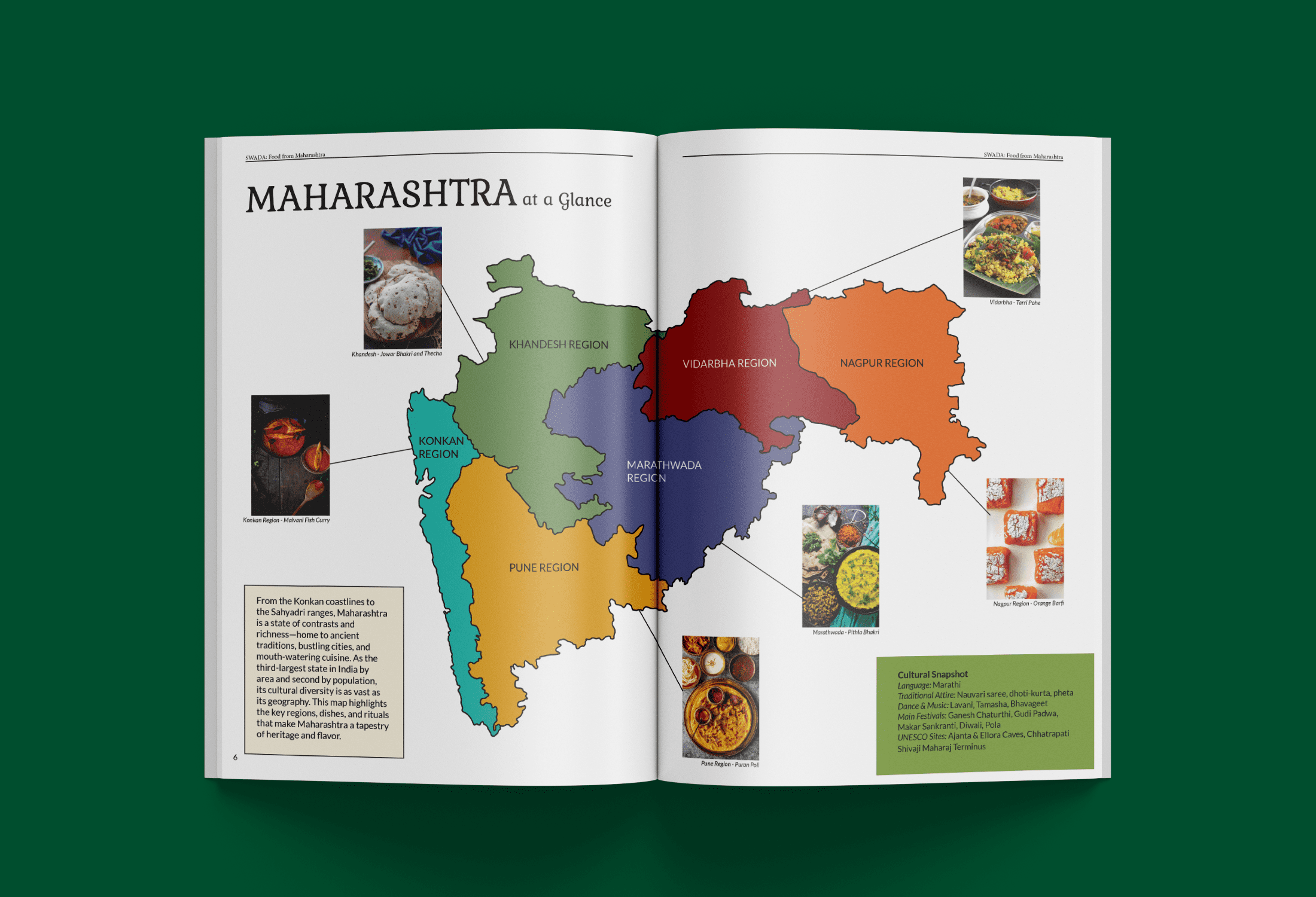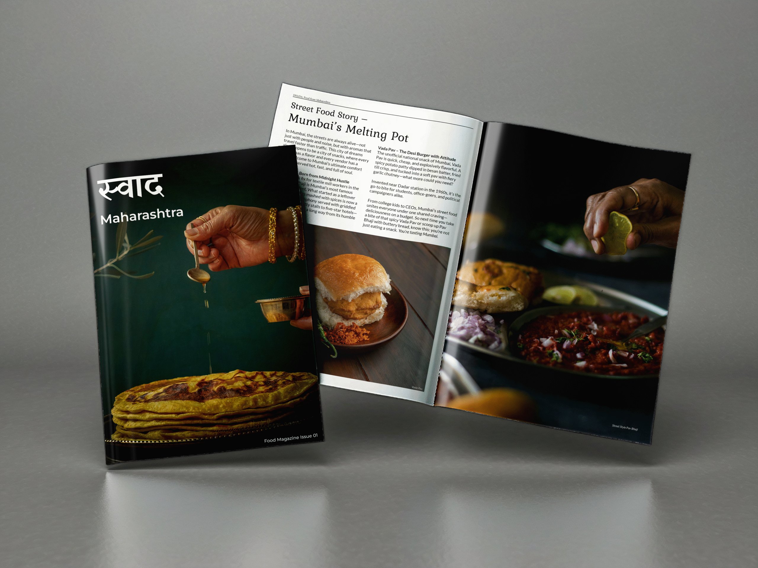 Created a magazine called ‘Swaad’. This is a magazine focusing on the various foods of the regions India. This is the first issue of the magazine for which the place I have chosen is Maharashtra